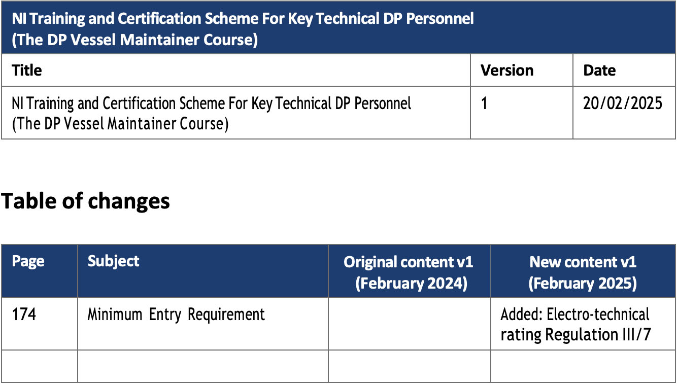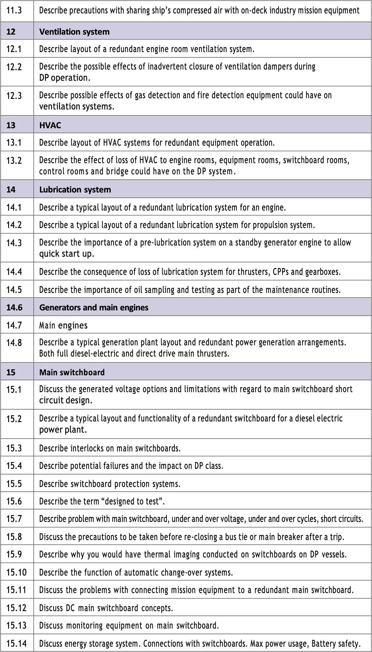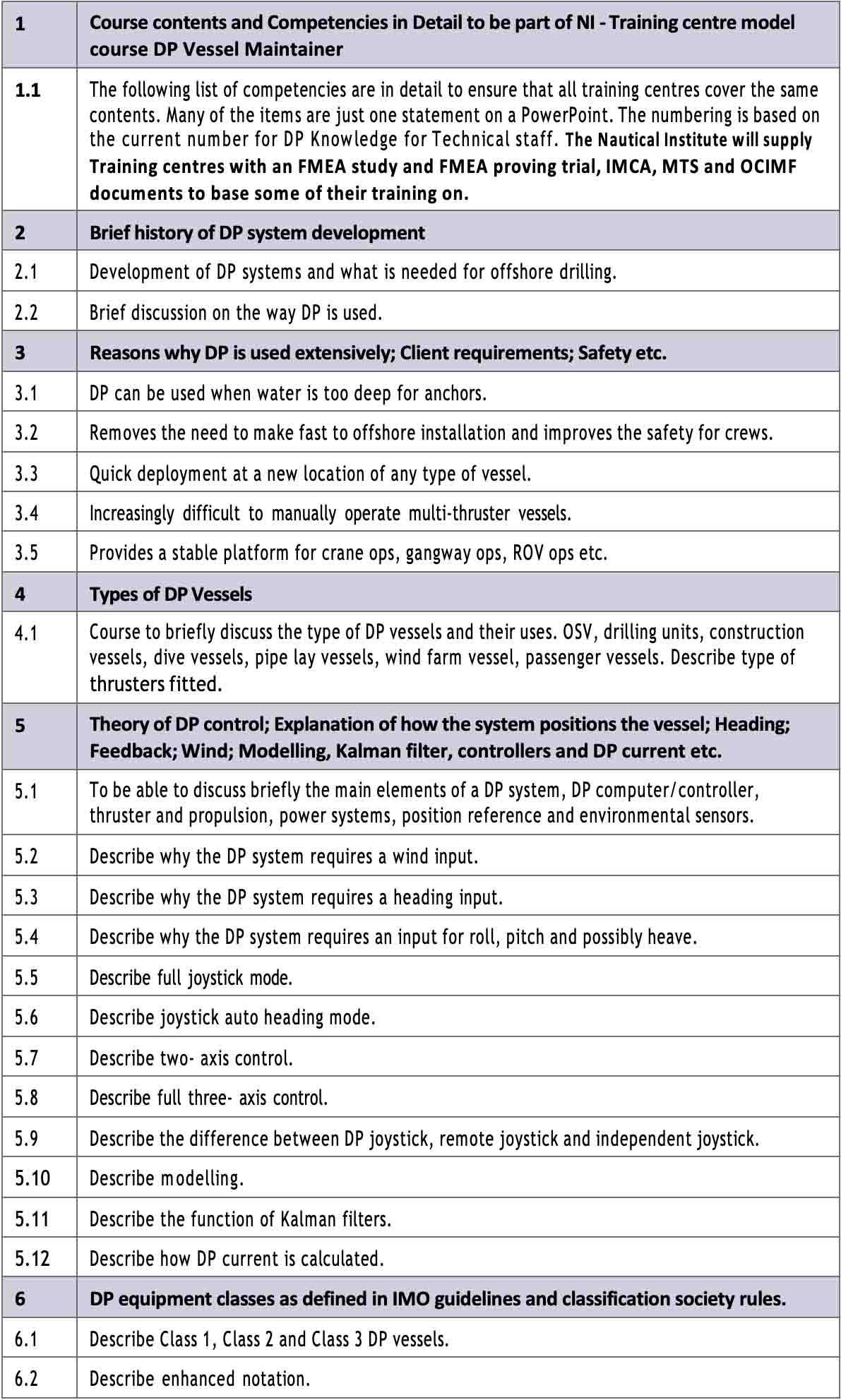 - 11. Appendix 1 to Training and Certification Scheme For Key Technical DP Personnel (The DP Vessel Maintainer Course) – Training, Accreditation & Requirements