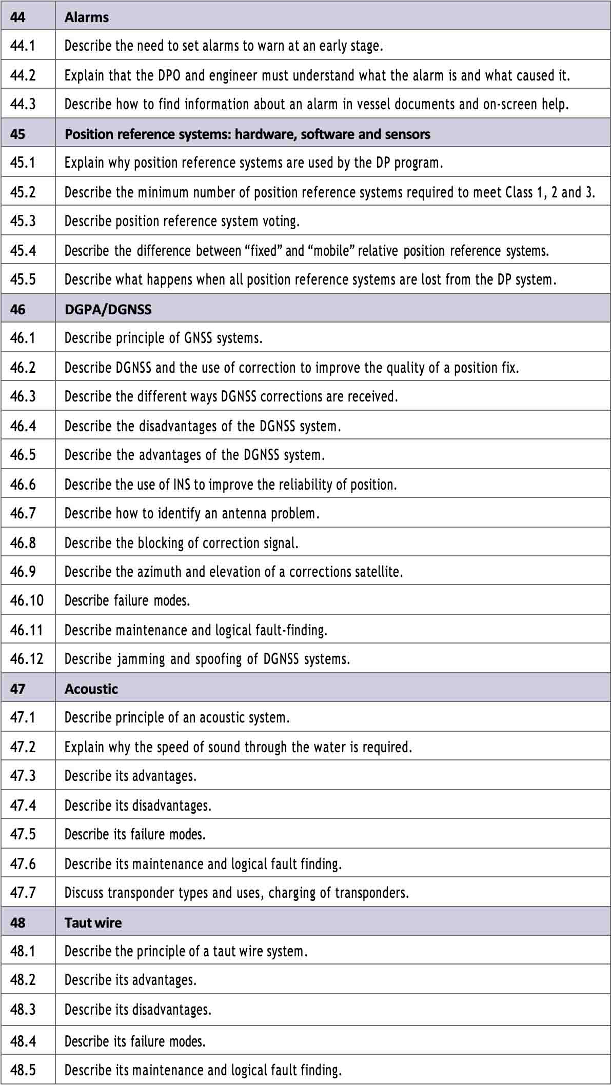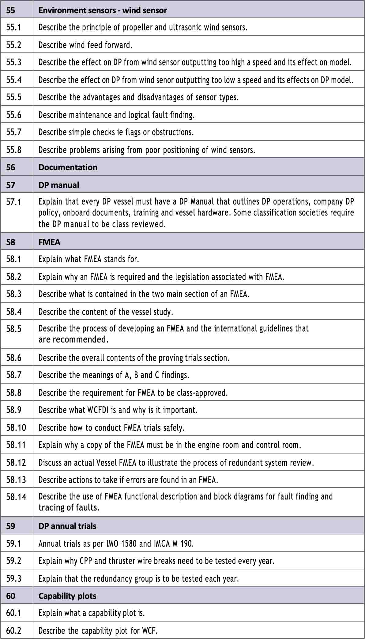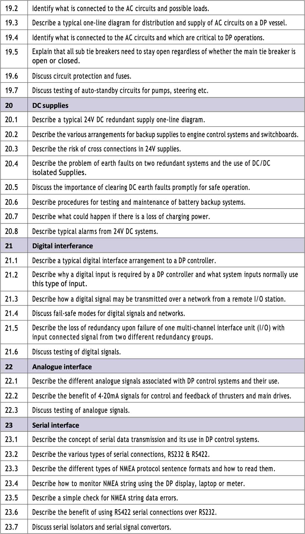 – To ensure DP Maintainers are familiar with DP theory, concepts and systems and all associated systems onboard their current vessel.