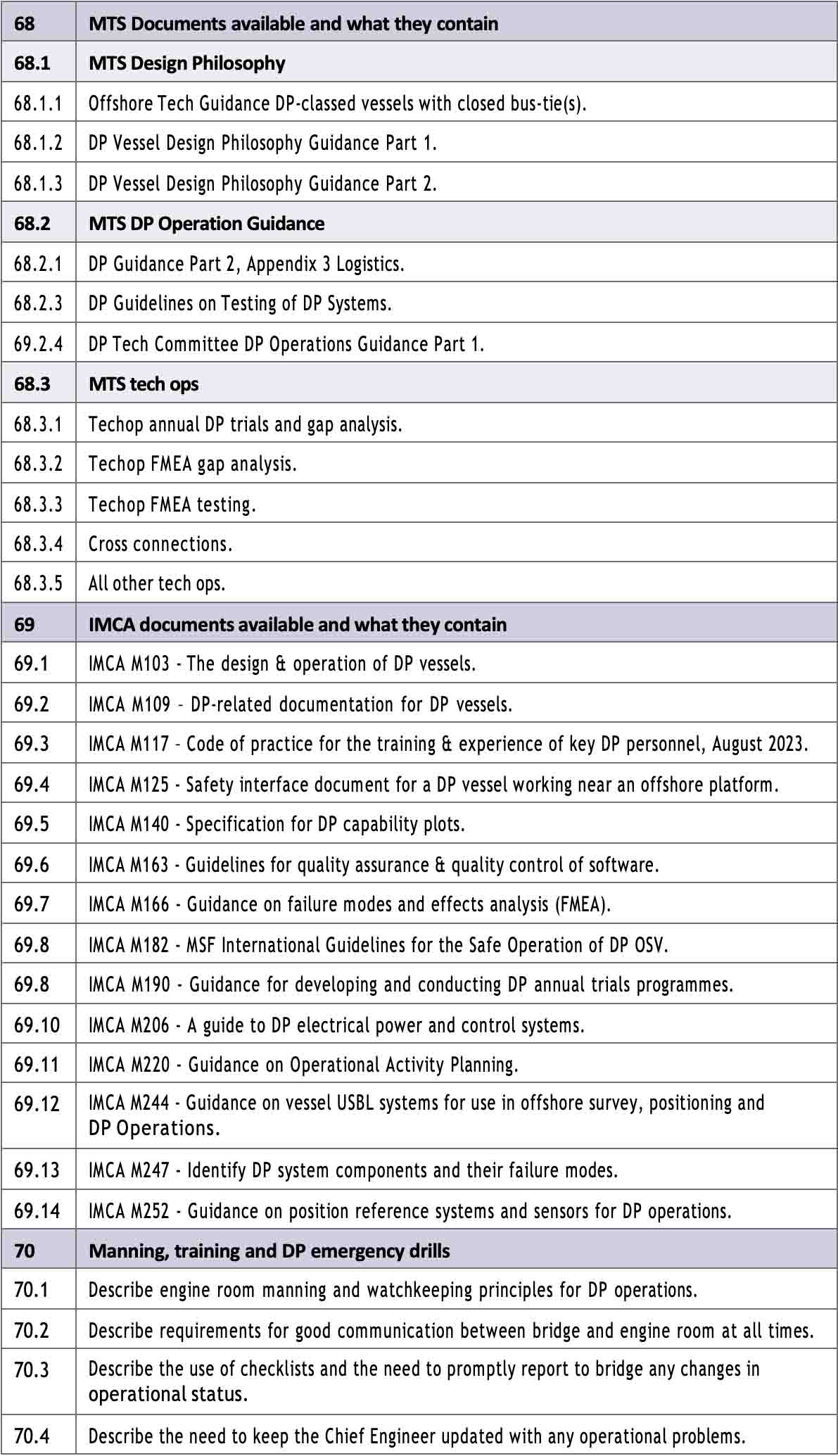 OCIMF Dynamic Positioning Assurance Framework Risk-Based guidance 2016, OCIMF DP FMEA Assurance Framework Risk Based Guidance 2020, MTS- Guidance for Professional Development of DP Personal -PDDP2 and the Nautical Institute course “DP Knowledge for Technical Staff”.
