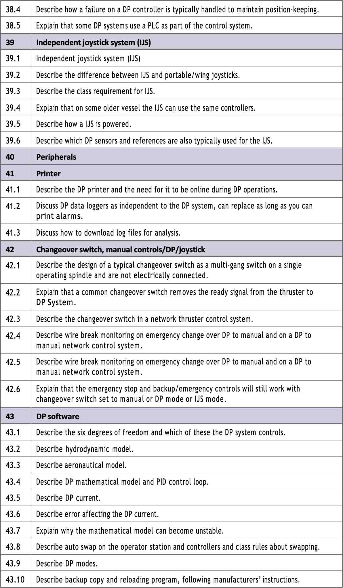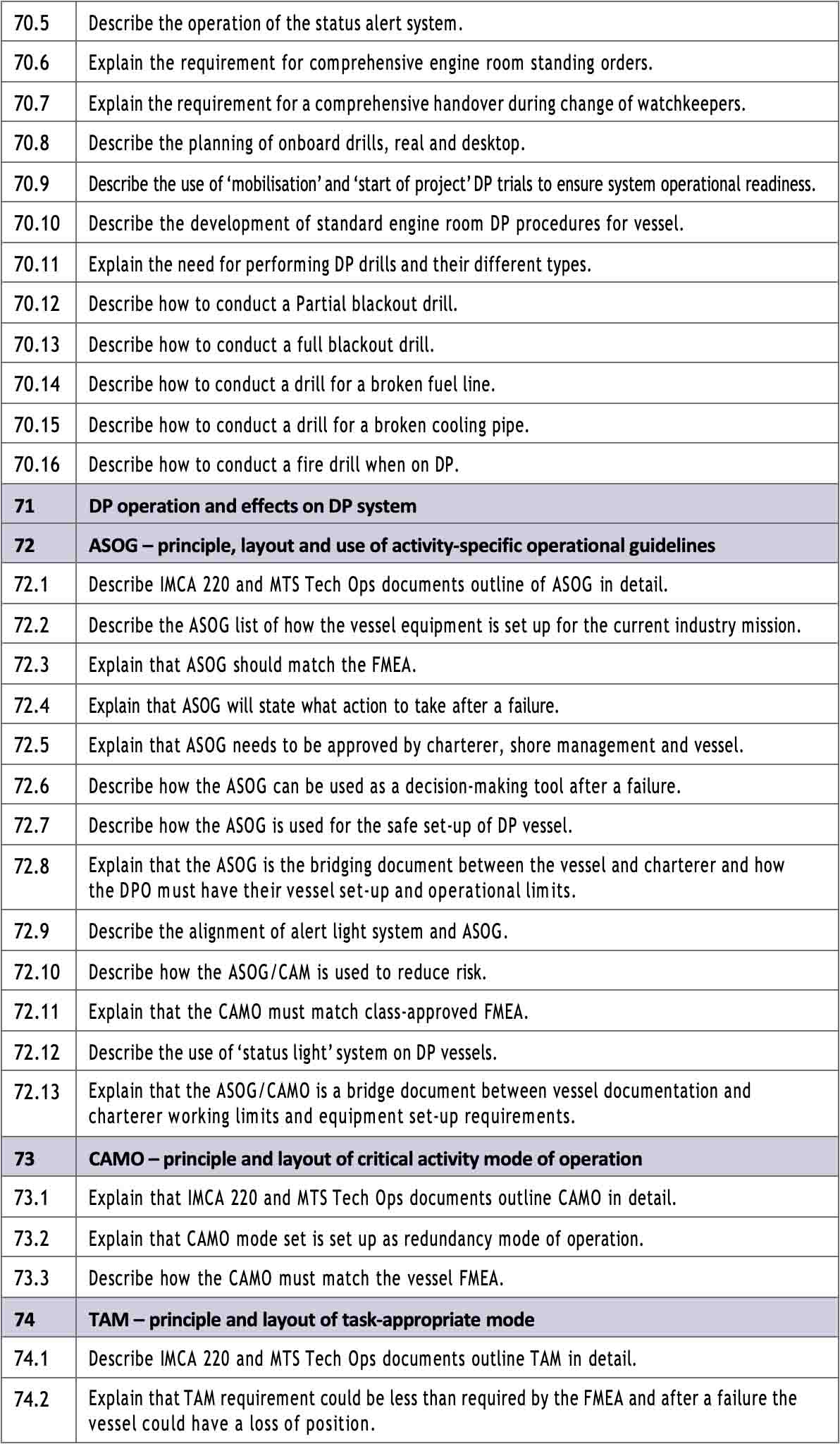 Total days: 26 sea time days onboard DP Class Vessel. Minimum days on DP: 7 days (2 hours operation per day). Task Sections.