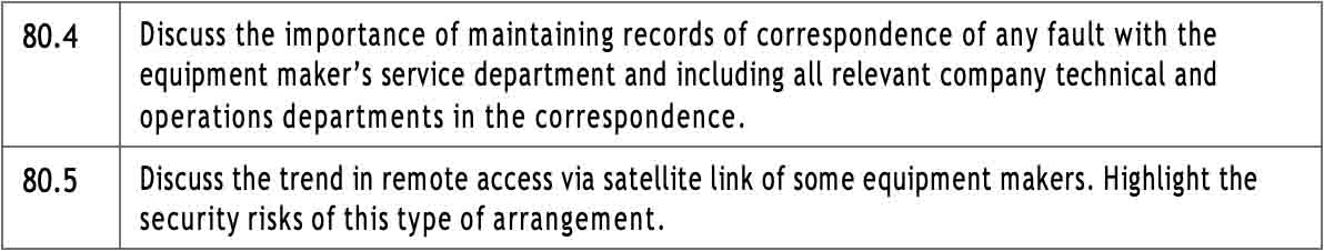 The training centre theory part and NI online exam for the course may also be attended by relevant shore-based technical staff and DPOs and technical cadets to improve their knowledge. They can be issued a certificate of completion (Theory Only).