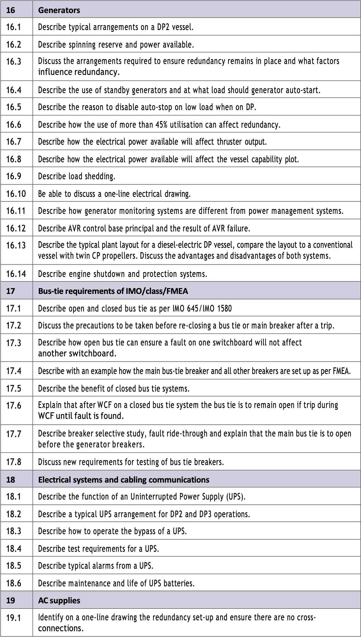 – To ensure a DP Vessel Maintainer has the training to carry out items listed under “What is a DP Vessel Maintainer?”